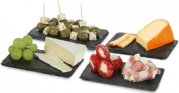 Boska Tapasbrett aus Schiefer, 4er Set. Der besondere Clou: Die Bretter lassen sich mit Kreide beschriften.