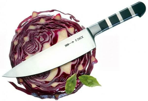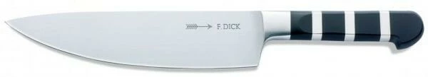Dick Messerserie 1905 verbindet klassisches Design mit modernster Technologie, höchstem Hygieneniveau sowie exzellenter Qualität und Funktionalität. Die ebenmäßigen Stahlringe werden durch ein einzigartiges Verfahren untrennbar mit dem Kunststoff verbunden. Alle Messer der Serie Dick 1905 sind optimal ausbalanciert und verjüngen sich zur Spitze. Die Klingen werden aus dem von Spitzenköchen bevorzugten deutschen Edelstahl XCrMoVMn gefertigt und schlank angeschliffen. Durch ein hochtechnologisches Härteverfahren bei Temperaturen von ca. 1060° C und einer Tieftemperaturbehandlung von bis zu -190° C wird eine Härte über 60 HRc erzielt. Gezieltes Anlassen in mehreren Schritten bei ca. 200° C ermöglicht eine einzigartige, dynamische und scharfe Schneide der Dick Messer 1905. Die Härte wird dabei schonend auf 55 HRc gebracht. Dieser besondere Härtegrad gewährleistet einerseits die Schärfe und Schnitthaltigkeit, lässt andererseits aber noch das einfache Nachschärfen zu.