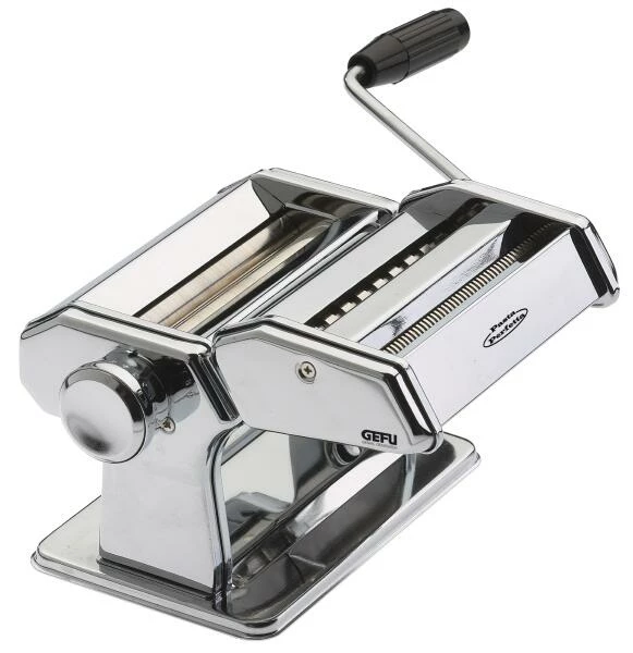 GEFU Pastamaschine Pasta Perfetta Deluxe. Die Pasta Perfetta Deluxe ist die Pastamaschine für perfekte Herstellung von original hausgemachter Pasta. So lassen sich mit ein paar Handgriffen sechs verschiedene Sorten von Teigwaren herstellen.