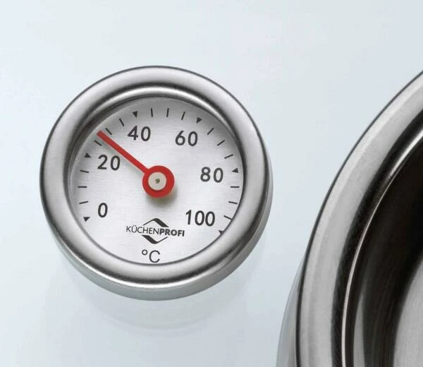 Der Aromabräter bzw. Dampfgarer von Küchenprofi verfügt über einen Aromaknopf im Deckel, den Sie mit bis zu 75 ml Wasser, Wein oder Sherry befüllen können. Über den Aromadeckel wird Ihr Bratgut regelmäßig mit der Flüssigkeit beträufelt und bleibt dadurch zart und saftig. Das neue Multitalent ist besonders vielseitig und kann zum Braten, Schmoren, Dünsten und Dämpfen eingesetzt werden. Der extra starke Mehrschichtboden leitet die Hitze optimal und erhitzt Braten, Rouladen und Gulasch gleichmäßig. Zum schonenden Dämpfen von Gemüse, Fisch und Geflügel nutzen Sie das Thermometer und den herausnehmbaren Gittereinsatz. Das vielseitige Kochgeschirr aus robustem Edelstahl ist für alle Herdarten, natürlich auch für Induktion geeignet. Der Aromabräter bzw. Dampfgarer lässt sich leicht säubern und ist spülmaschinenfest.