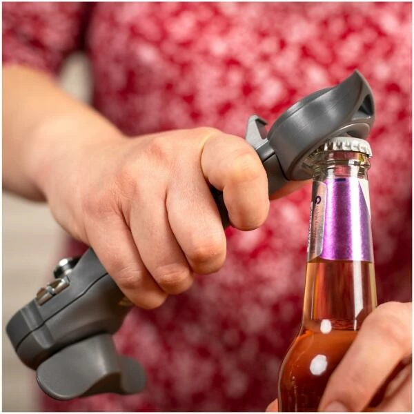 Unser hipper Auto Safety Master Mehrzwecköffner macht das Öffnen von Dosen, Flaschen, Kronkorken und mehr einfach, sauber und sicher. Eine superhandliche Version unserer selbsteinrastenden Auto Safety Dosenöffner. Öffnet einfach alles.