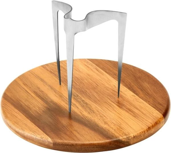 Der Burgerspieß bietet Ihnen aber nicht nur in praktischer Hinsicht eine Erleichterung beim Genießen des Burgers, sondern ist auch optisch ein echter Hingucker. Aus diesem Grund wurde er auch mit dem Pott: Design Award 2019 ausgezeichnet. Der schlichte Burgerspieß in Kronenform wird begleitet von einem edlen und robusten Teller aus Akazienholz.
