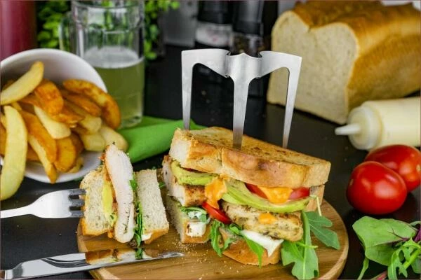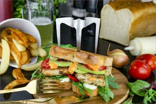 Die Idee mit einem Spieß in der Mitte den Burger vor dem auseinanderfallen zu bewahren, ist nicht neu. Neu ist, dass der Spieß zwei Beine hat. So hält der Spieß in der Mitte die einzelnen Zutaten des Burgers zusammen, während die beiden Beine dafür sorgen, dass Ihr leckerer Burger nicht umfällt.