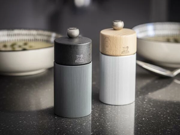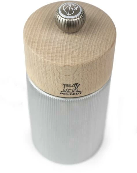 Französische Natur trifft auf technische Raffinesse: Ein Mühlenkopf aus Buchenholz vereint sich mit einem aus Aluminium gerippten Mühlenkörper. Perfekt für den alltäglichen Einsatz zu Tisch geeignet. Integriert ist das bewährte Peugeot-Mahlwerk. Mittels Drehknopf auf der Oberseite ist eine simple Einstellung des Mahlgrads möglich. Weitere Details: – H 12 cm, – Hergestellt in Frankreich – PEFC™-Holz aus französischen Wäldern –