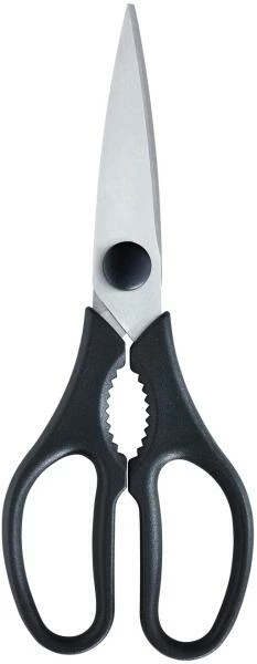 Solide Küchenschere mit Mikroverzahnung. Durch den Aushängenagel können beide Scherenhälften voneinander getrennt und einfach gereinigt werden. Spülmaschinengeeignet.